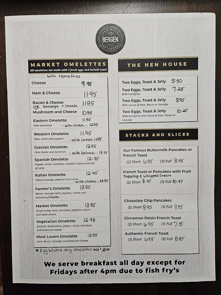 Welcome to Bergen Farm Market Family Restaurant, a cozy dining destination in the heart of Bergen, NY. Enjoy a relaxed atmosphere while savoring a delightful menu featuring local specialties and excellent coffee. Our restaurant serves breakfast, lunch, and dinner, making it the perfect spot for families and solo diners alike. With amenities including outdoor seating, takeout options, and wheelchair accessibility, we strive to accommodate all our guests. Don’t forget to indulge in our delicious desserts! Join us for a meal where quality meets comfort—from hearty brunches to satisfying dinners, we've got something for everyone.
